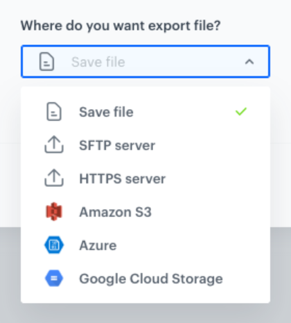 | Delivery options | Amazon S3, Google Cloud Storage, Synerise file storage |