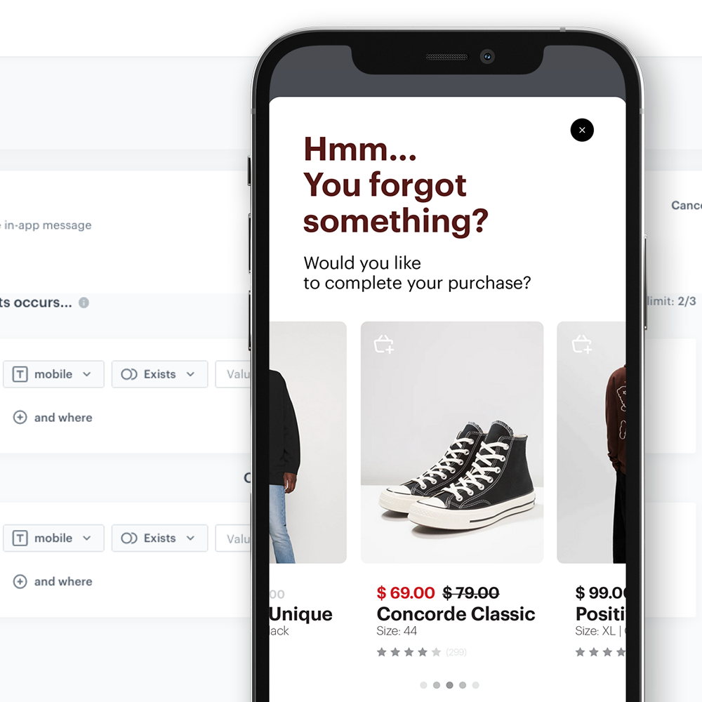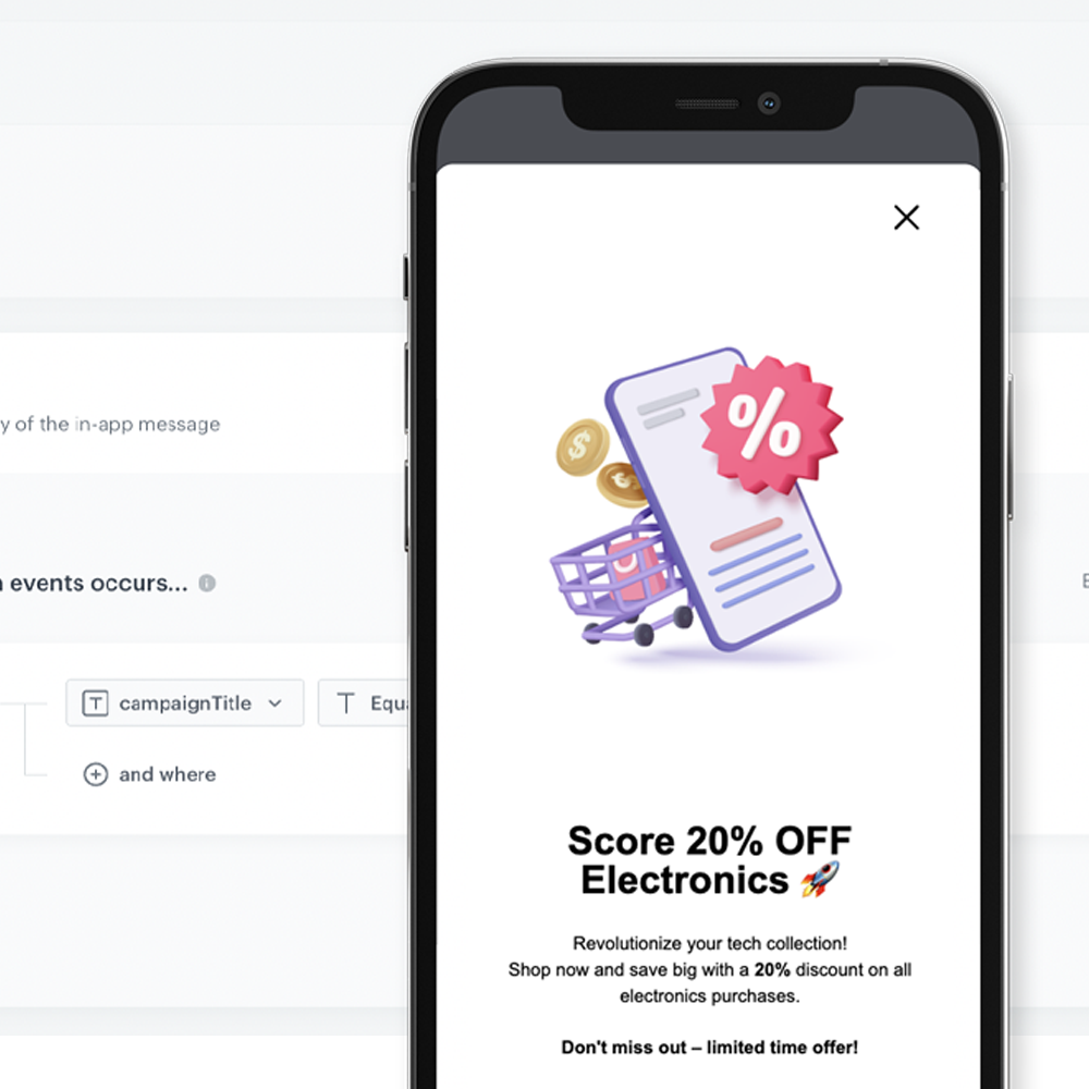 3. Configuration flexibility: Customize your campaigns like never before. The drag & drop builder gives you the flexibility to tailor your in-app messages exactly to your business needs.