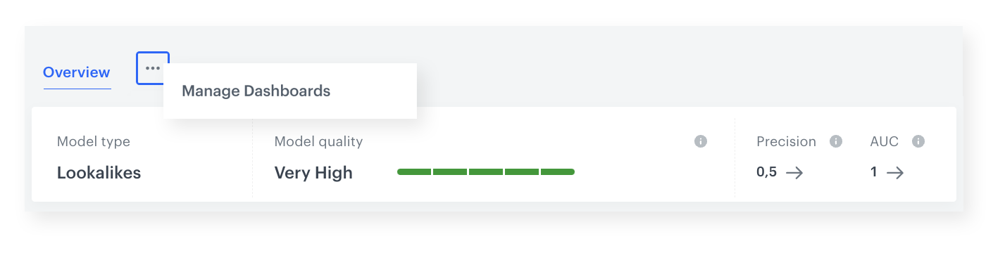 Enjoy a consistent experience across all types of Predictions with our unified default Overview dashboard. Quickly check metrics such as lift and gain or create segments of interest effortlessly. No matter what type of model you use, you'll have a consistent dashboard view that offers a quick and comprehensive overview of your prediction results.