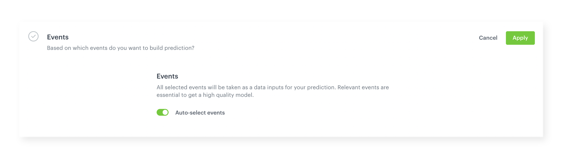 We've made some improvements to the "Scratch mode" in Predictions creation. Now, you can select specific events to consider as input to your prediction, greatly simplifying the once complex process of selecting features. You have the control to easily highlight the events essential for your predictions, and our system takes care of the rest of the analysis.