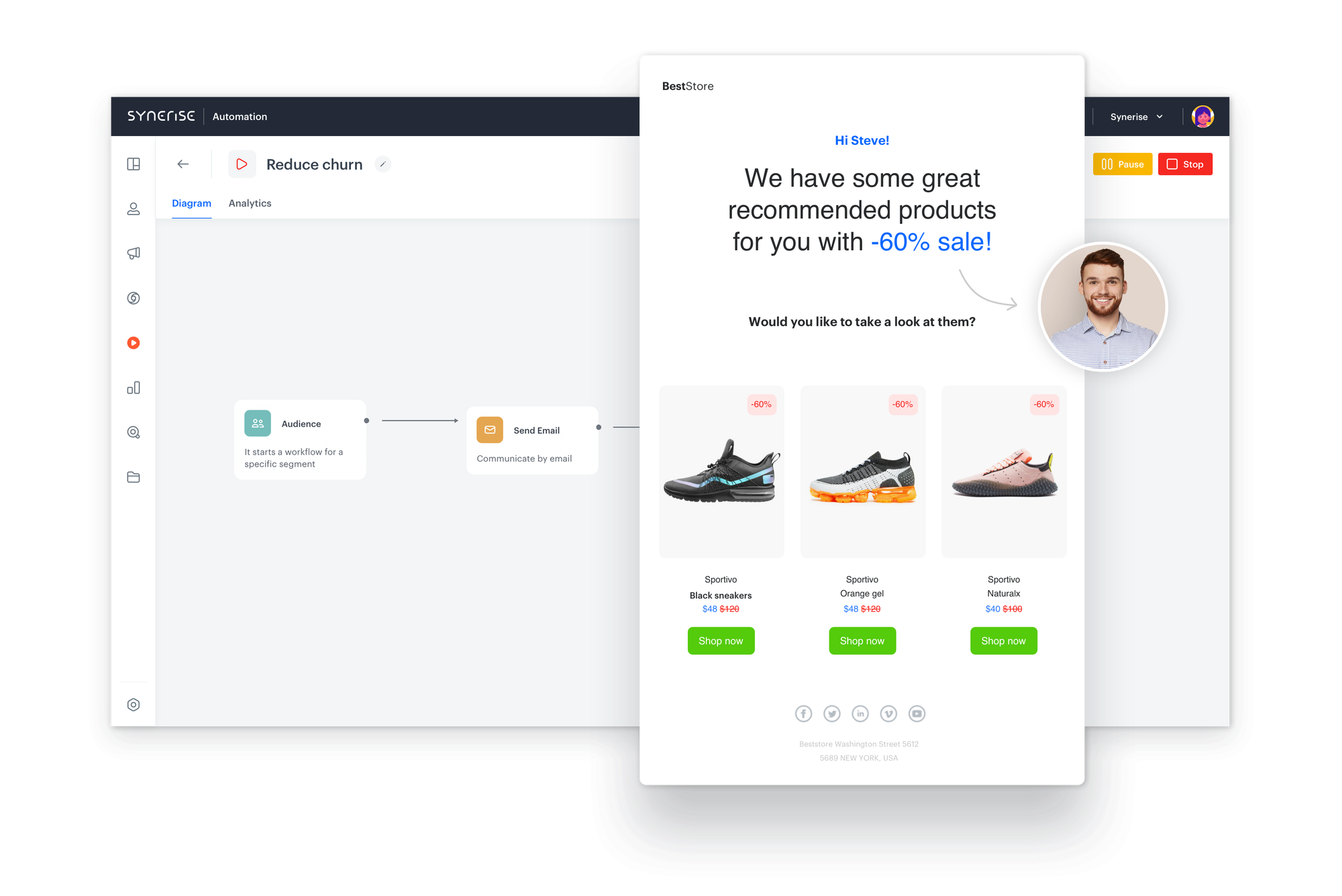 Read the following Use Case - Create an automation to reduce churn to learn how you can reduce churn with automation by sending specific communications targeting a defined group of customers.